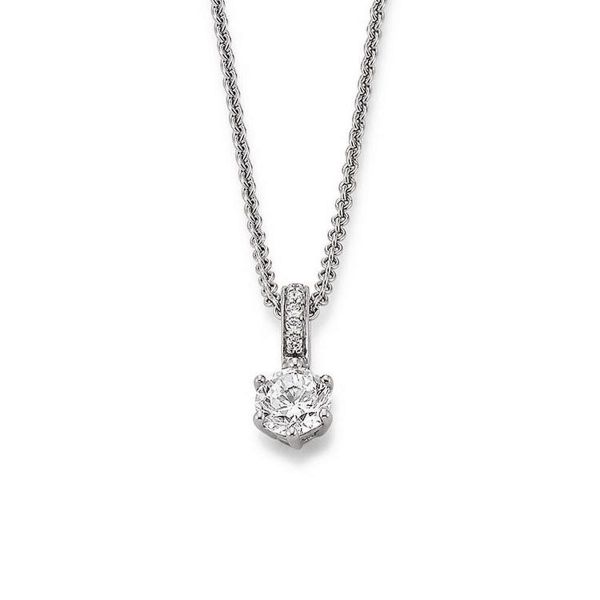 Ein wahrer Hingucker ist der Anhänger aus hochglänzend poliertem und rhodiniertem Sterlingsilber, der mit 6 Zirkonia verziert ist.