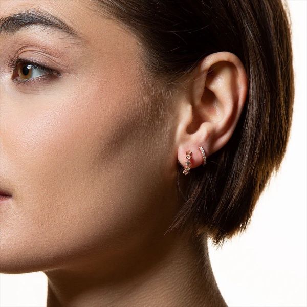Diese Ohrringe sind aus rosé vergoldetem 925/- Sterlingsilber. Helle Zirkonia-Steine schmücken das Traumpaar rundum und sorgen für leuchtende Akzente. Das elegante Design macht die Glanzstücke zu vielseitigen Styling-Partnern.