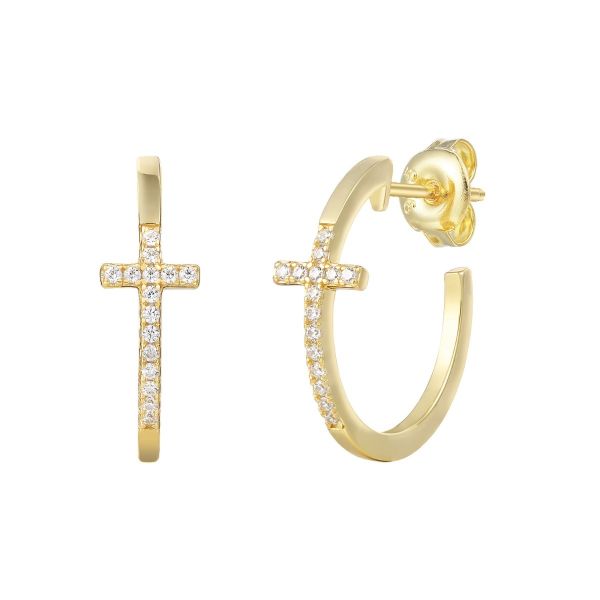 Funkelstück! Diese Creolen Ohrstecker aus Sterlingsilber, vergoldet, bestechen durch ihren gefassten Zirkonia-Stein-Kreuz der nicht nur durch den Tag begeleitet, sondern auch für funkelnde Akzente sorgt.