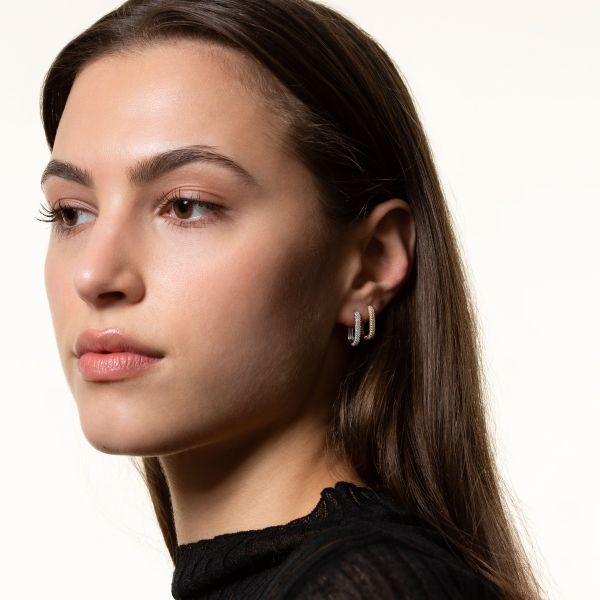 Verbinde Eleganz und Vielseitigkeit mit den DUO LINK Ohrringen aus hochwertigem und recyceltem 925/- Sterlingsilber und funkelnden Zirkonia-Steinen! Die Ohrringe sind die perfekte Basis für einen Earcandy Look, kombiniere sie mit weiteren Modellen der DUO LINK Kollektion oder unserem LOVEKNOT Ear Cuff – hier gilt mehr ist mehr!