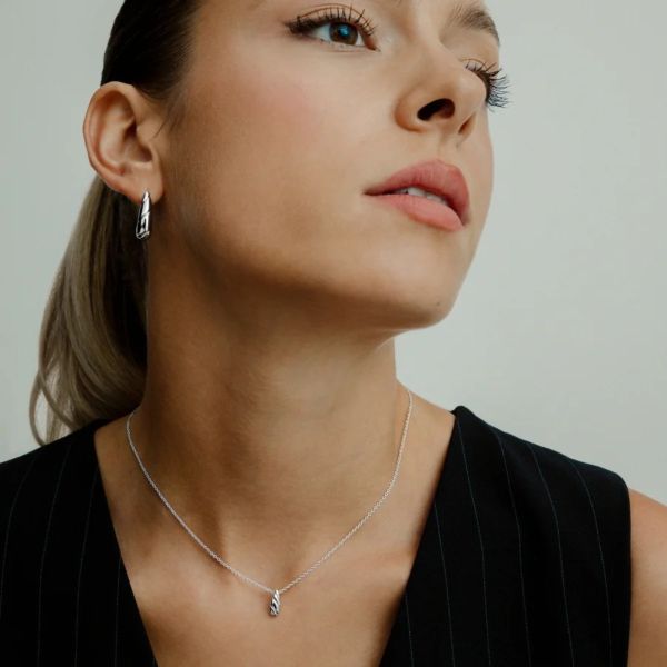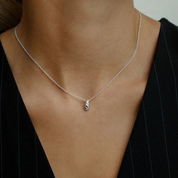 Die SCULPTED Halskette aus rhodiniertem 925/- Sterlingsilber ist ein zeitloses Schmuckstück mit moderner Ausstrahlung. Der tropfenförmig gestaltete Anhänger greift fließende Linien auf und setzt ein klares, stilvolles Detail. Solo getragen unterstreicht die Halskette den Look auf elegante Weise, im Ketten-Layering lässt sie sich vielseitig kombinieren. Ein Schmuckstück für alle, die reduziertes Design und skulpturale Akzente schätzen.