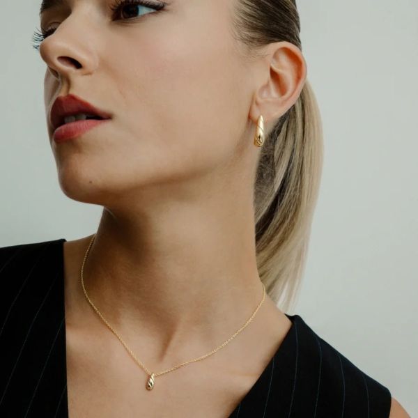 Die SCULPTED Halskette aus hochwertigem 925/- Sterlingsilber mit einer 18 Karat Vergoldung ist ein zeitloses Schmuckstück mit warmer, moderner Note. Der tropfenförmig gestaltete Anhänger greift fließende Linien auf und setzt ein klares, stilvolles Detail. Ob einzeln getragen oder im Ketten-Layering kombiniert, unterstreicht die Halskette den Look auf elegante Weise. Ein Schmuckstück für alle, die skulpturale Formen und dezente Statements schätzen.