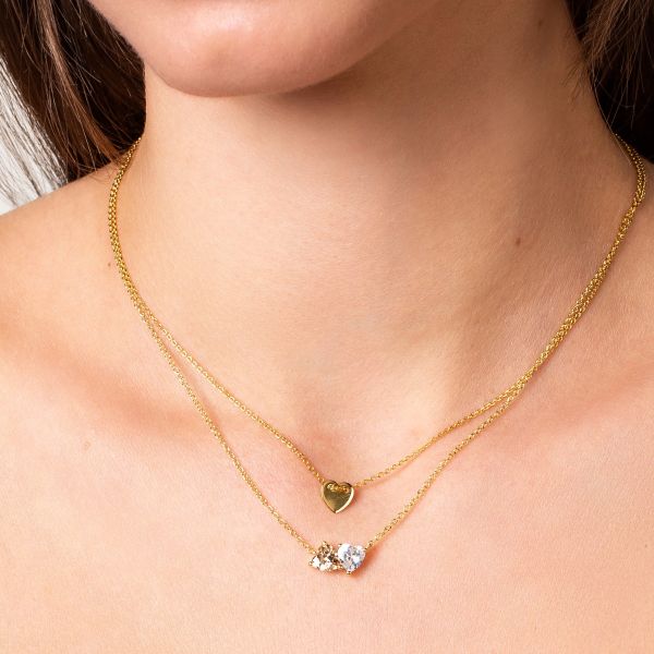 Diese Xenox Kette aus der LOVE STORY Kollektion mit zwei wunderschönen Herzen in 925/- Sterlingsilber, 18K vergoldet und zwei Zirkonia Steinen ist ein wunderschönes Geschenk für die Liebsten oder sich Selbst.