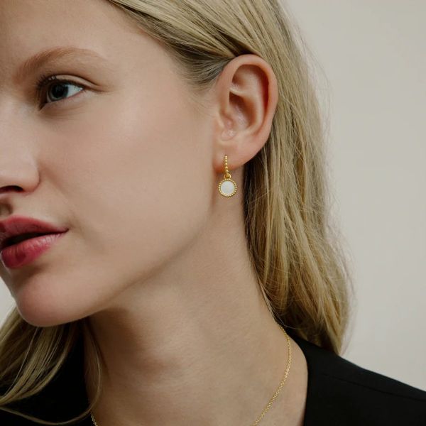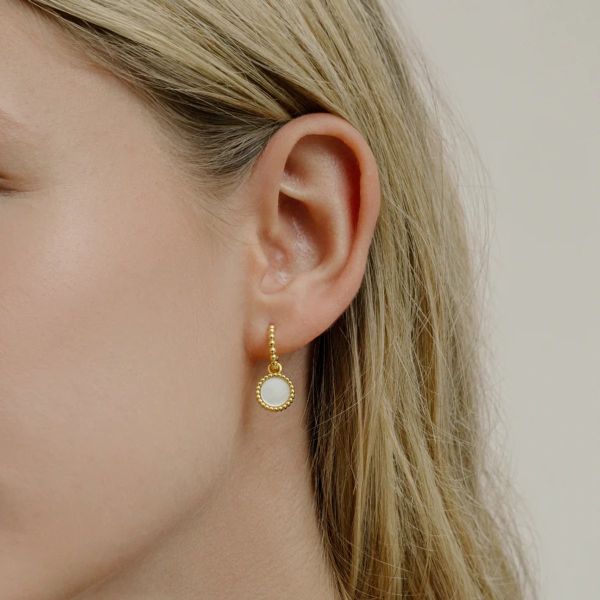 Die ORBIT Ohrringe aus 925/- Sterlingsilber mit einer 18 Karat Vergoldung verbinden runde Perlmutt-Anhänger mit einer fein gearbeiteten Creole. Der sanfte Schimmer des Perlmutts sorgt für eine elegante, ruhige Ausstrahlung und setzt einen dezenten Akzent. Ein zeitloses Schmuckstück, das sich vielseitig kombinieren lässt und deinem Outfit eine leichte, moderne Note gibt.