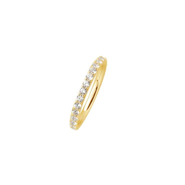Dieser funkelnde Klassiker darf in keinem Schmuckkästchen fehlen! Der Damenring lässt sich vielseitig kombinieren und glänzt in 18 Karat vergoldetem 925/- Sterlingsilber. Helle Zirkonia-Steine schimmern wunderschön im Licht und machen ihn zu einem Blickfang.