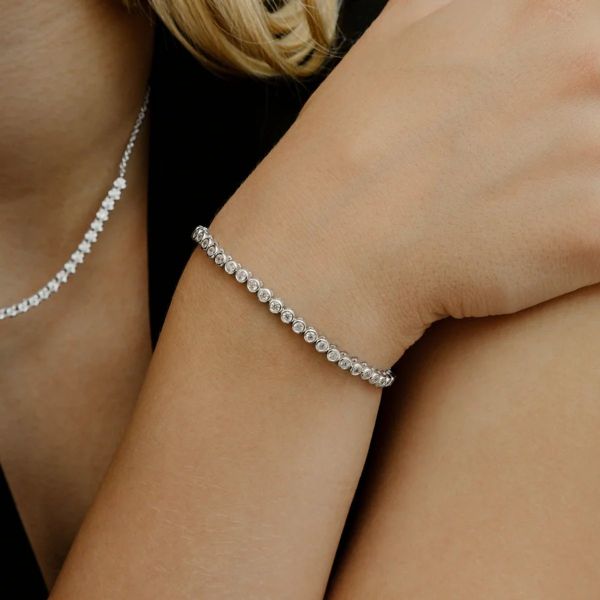 Das VENICE Tennisarmband aus rhodiniertem 925/- Sterlingsilber ist rundum in Zargenfassungen mit funkelnden Zirkonia-Steinen besetzt. Das fließende Design verleiht dem Armband eine elegante, moderne Ausstrahlung und einen feinen, gleichmäßigen Glanz. Das Armband lässt sich vielseitig tragen – solo als stilvolles Statement oder in Kombination mit weiterem Armschmuck. Ein zeitloses Schmuckstück für alle, die klare Eleganz und funkelnde Akzente schätzen.